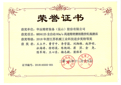 江蘇機械工業(yè)科技進步獎特等獎-2018