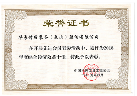 機(jī)床工具工業(yè)協(xié)會(huì)綜合經(jīng)濟(jì)效益十佳-1
